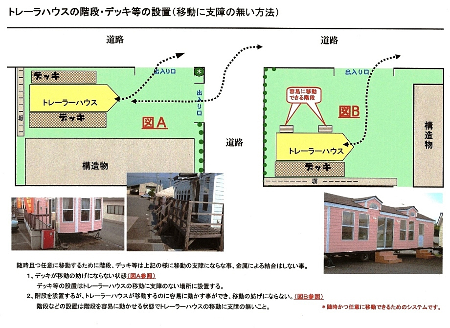 随時かつ任意に移動できる利点を生かした製品は、日本各地で活躍できると確信いたしております。 しかし、それには数々のルールがあります。構造、輸送、設置、ライフラインの接続等です。