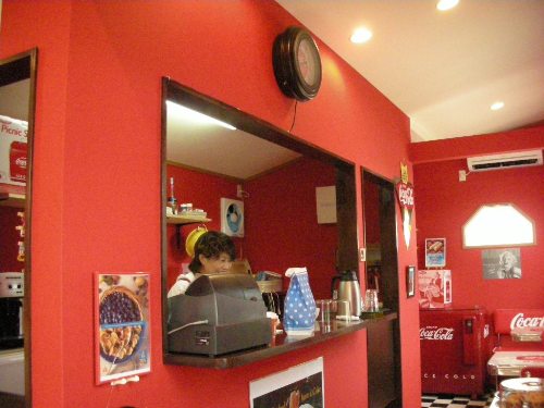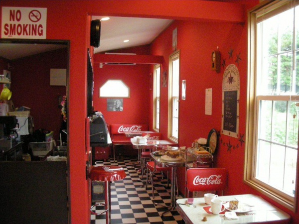 内装、厨房設備、カウンター、トイレなどを備えたアメリカンダイナー風の店舗。