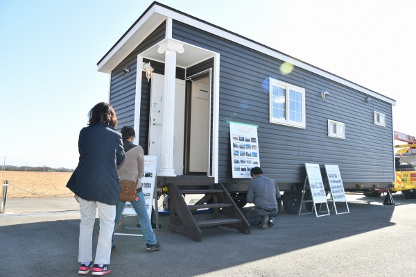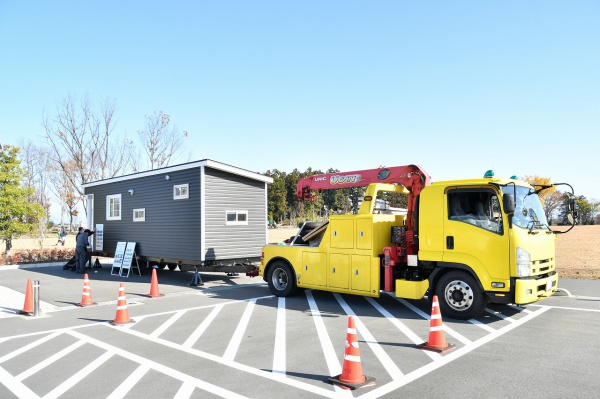 防災協定締結した群馬県庁の要請で藤岡市の防災施設見学会に参加しました。 トレーラ―ハウスを知らない職員や市民が多い為、災害発生時支援するトレーラーハウスの現物を展示し見学していただきました。 室内20㎡の小型の住居モデルを展示、実際は38㎡のトレーラーハウスの活用が多いと説明し、市の職員、市民からも多大な関心を頂いた。 搬入搬出のスムーズさに驚かれたこと、藤岡市担当及び区長には自治体での備蓄活用をお願いした。