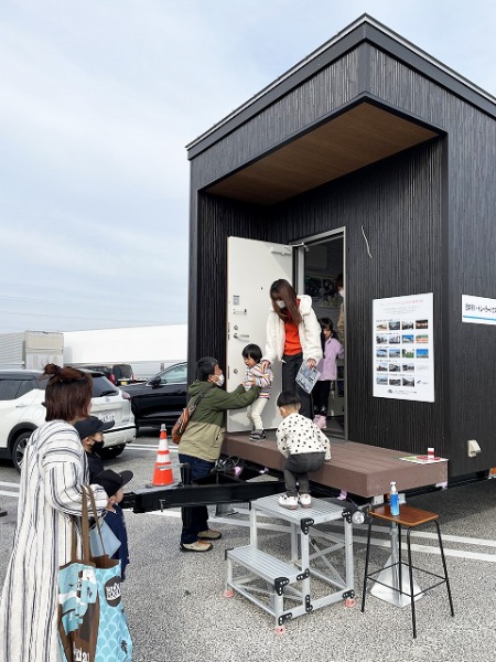 小型ではありますが、現物のトレーラーハウスを見ていただくため展示・啓蒙をさせていただきました。