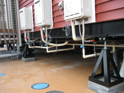 管理棟、女子トイレ・シャワールーム、男子トイレ・シャワールーム、身体障害者トイレ・シャワールーム、/売店として活用。増水時や災害発生時には、移動して住民のために活用するとの事。