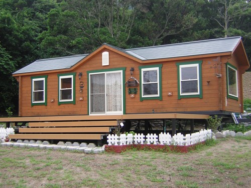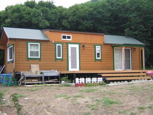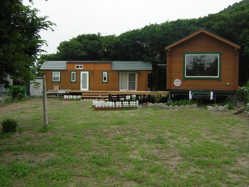 総ログハウスタイプの住居型トレーラーハウスを活用してドッグランを展開。用途に合わせて建物のタイプを使い分けています。